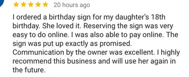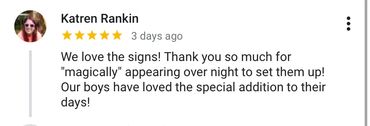 *We ask that you water your yard several consecutive days prior to the yard card rental time to soften up the desired placement area, and we ask that you manicure your lawn prior to sign placement or after signs are removed so that no signs are damaged. Failure to water could result in sign not being placed ($25 fee dedcuted from refund). Mowing around signs results in a $50 cleaning fee (in addition to replacement of damaged signs).